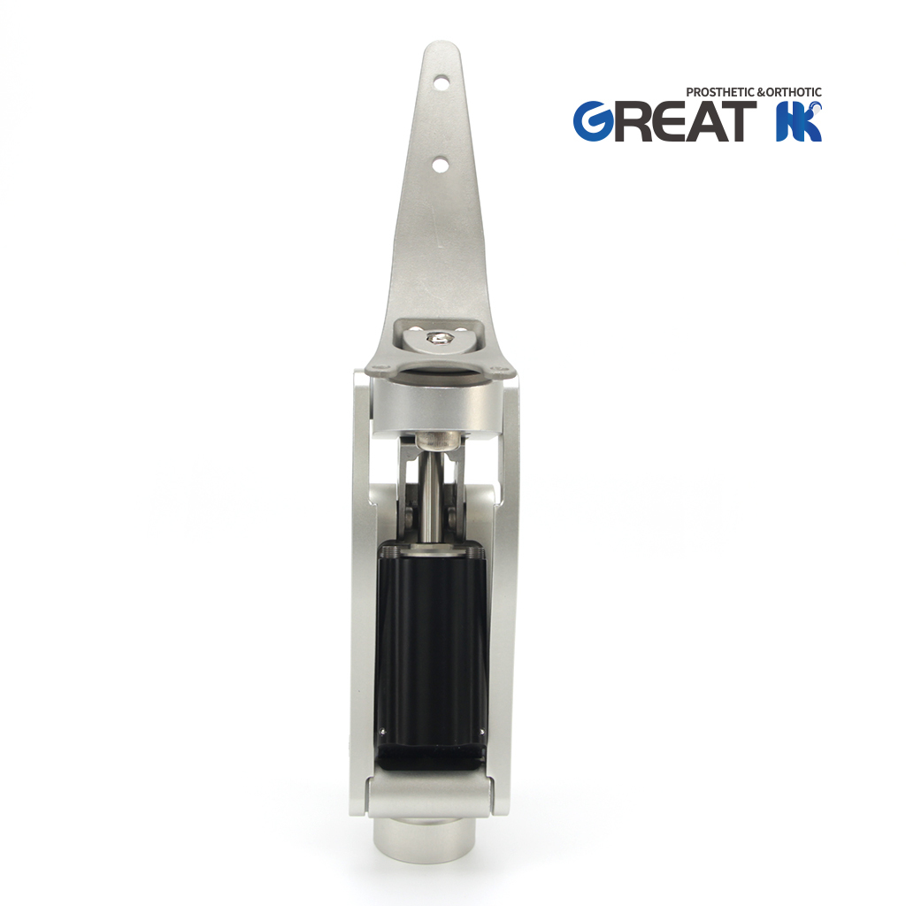 When the prosthetic foot contacts the ground and bears weight, the geometric linkage system automatically creates a locking effect, stabilizing the knee joint and preventing accidental buckling.